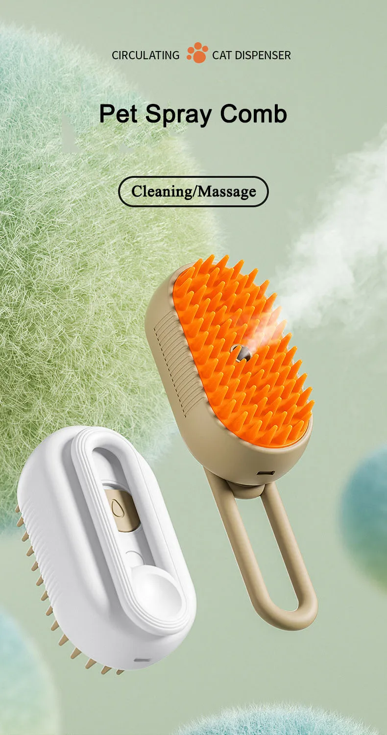3-in-1 Steam Grooming Brush for Cats & Dogs