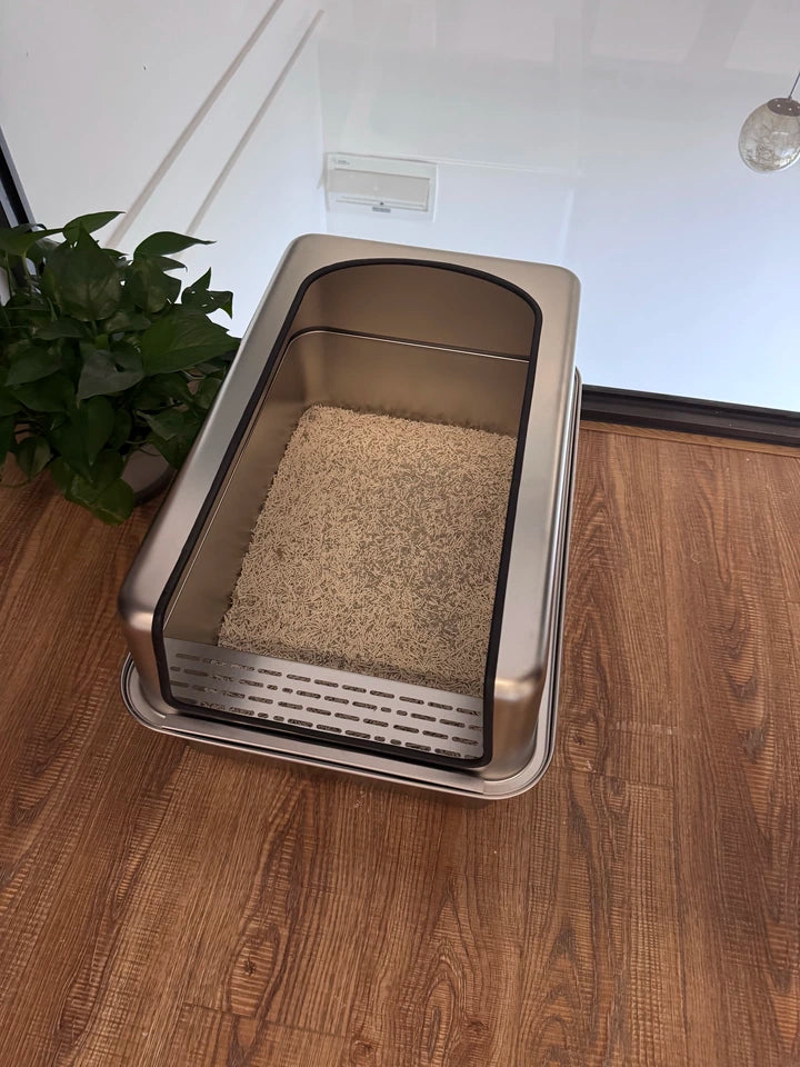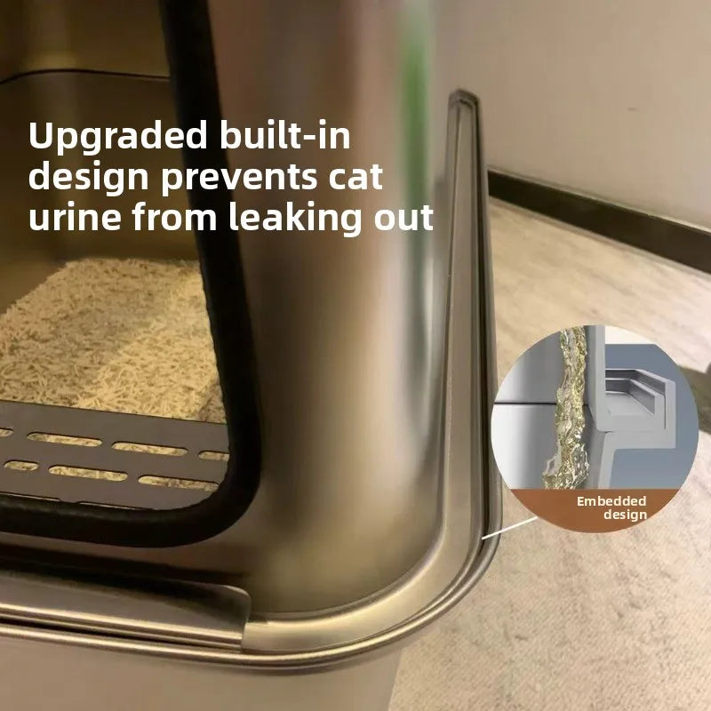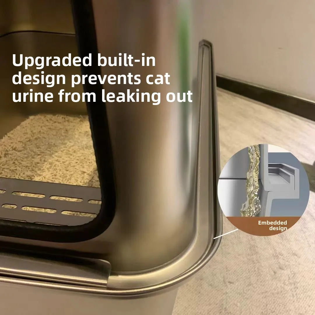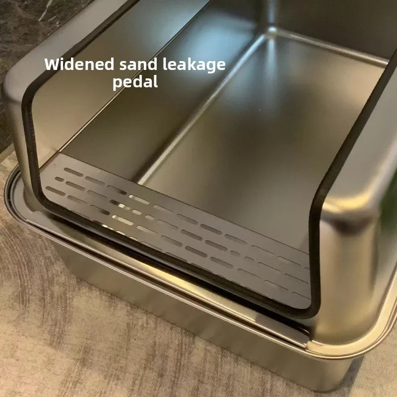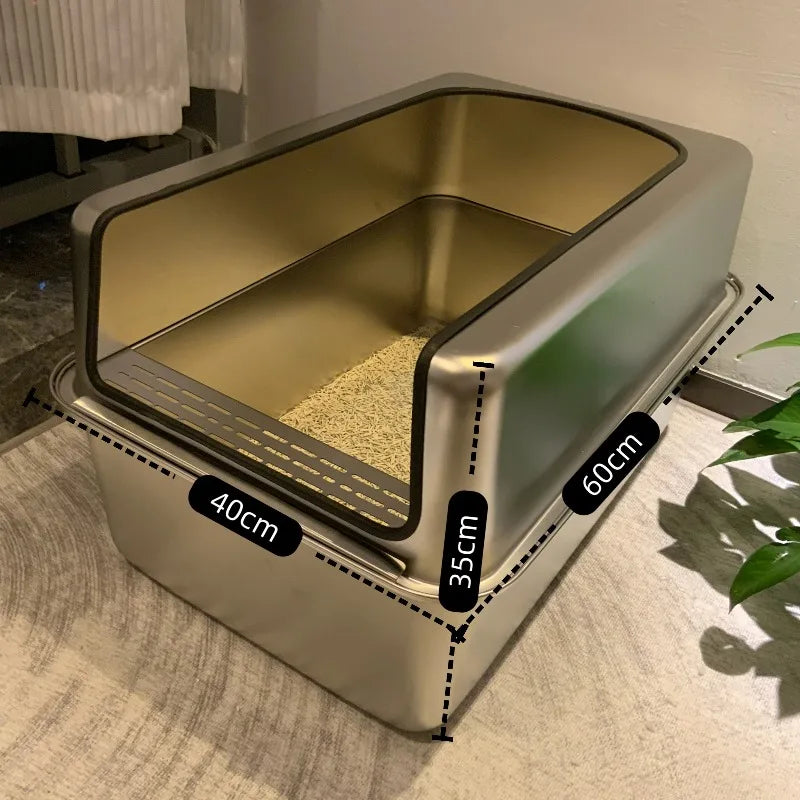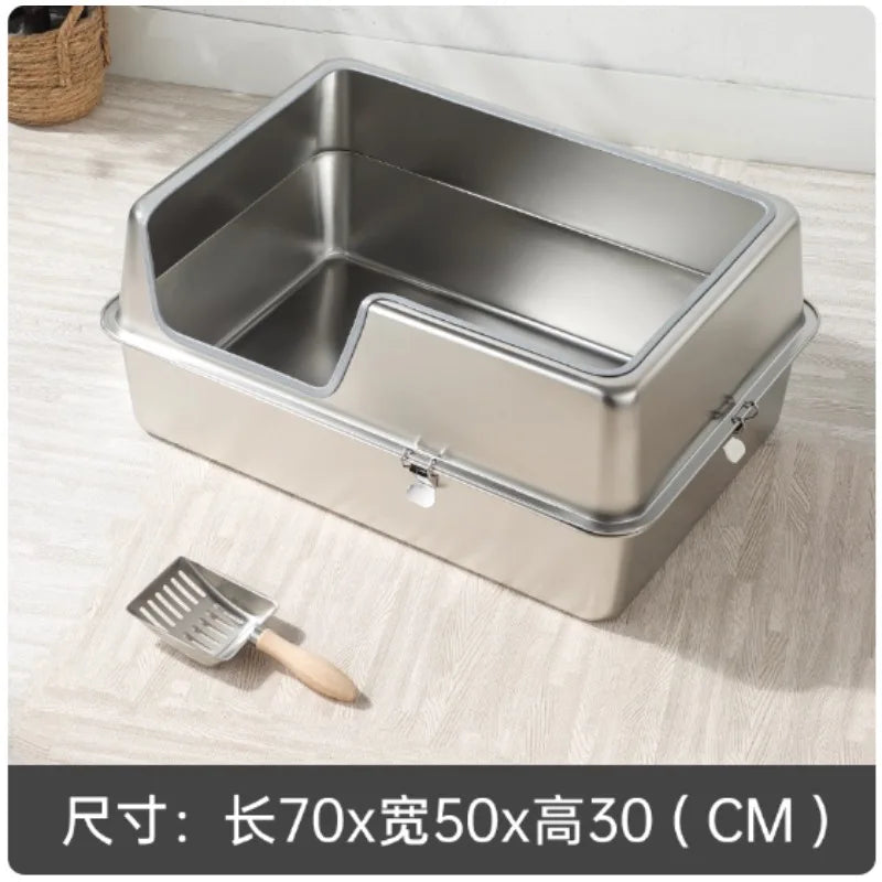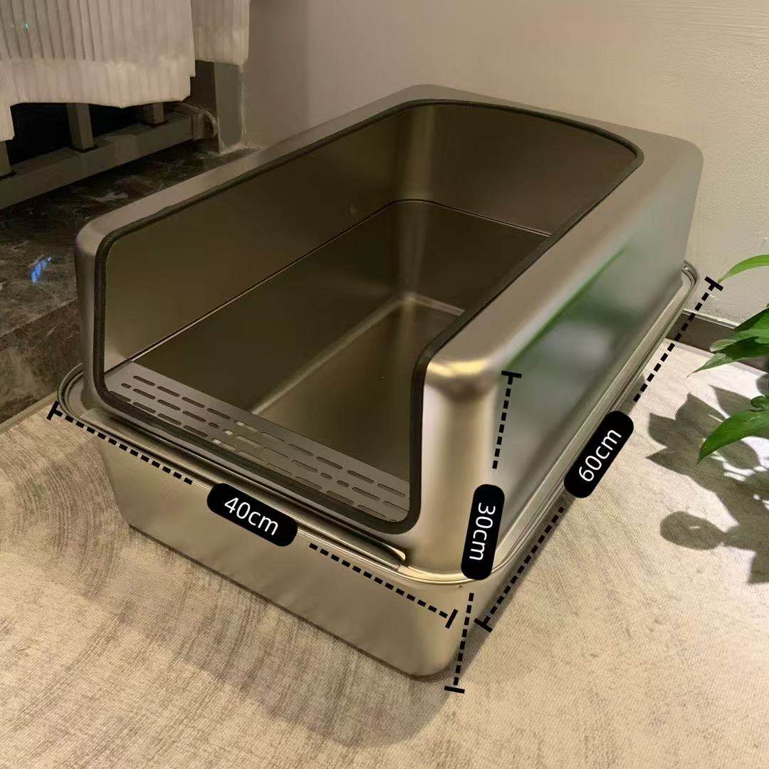 Keywords:XL stainless cat litter box, open cat toilet, spill-proof litter tray, metal cat pan, large open litter bin, elevated cat box, no-leak cat litter, anti-splash litter box, giant stainless pet tray, odorless cat toilet