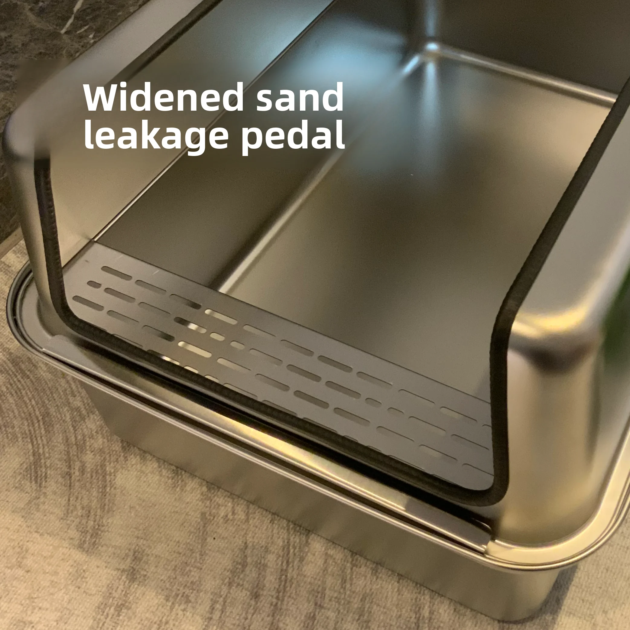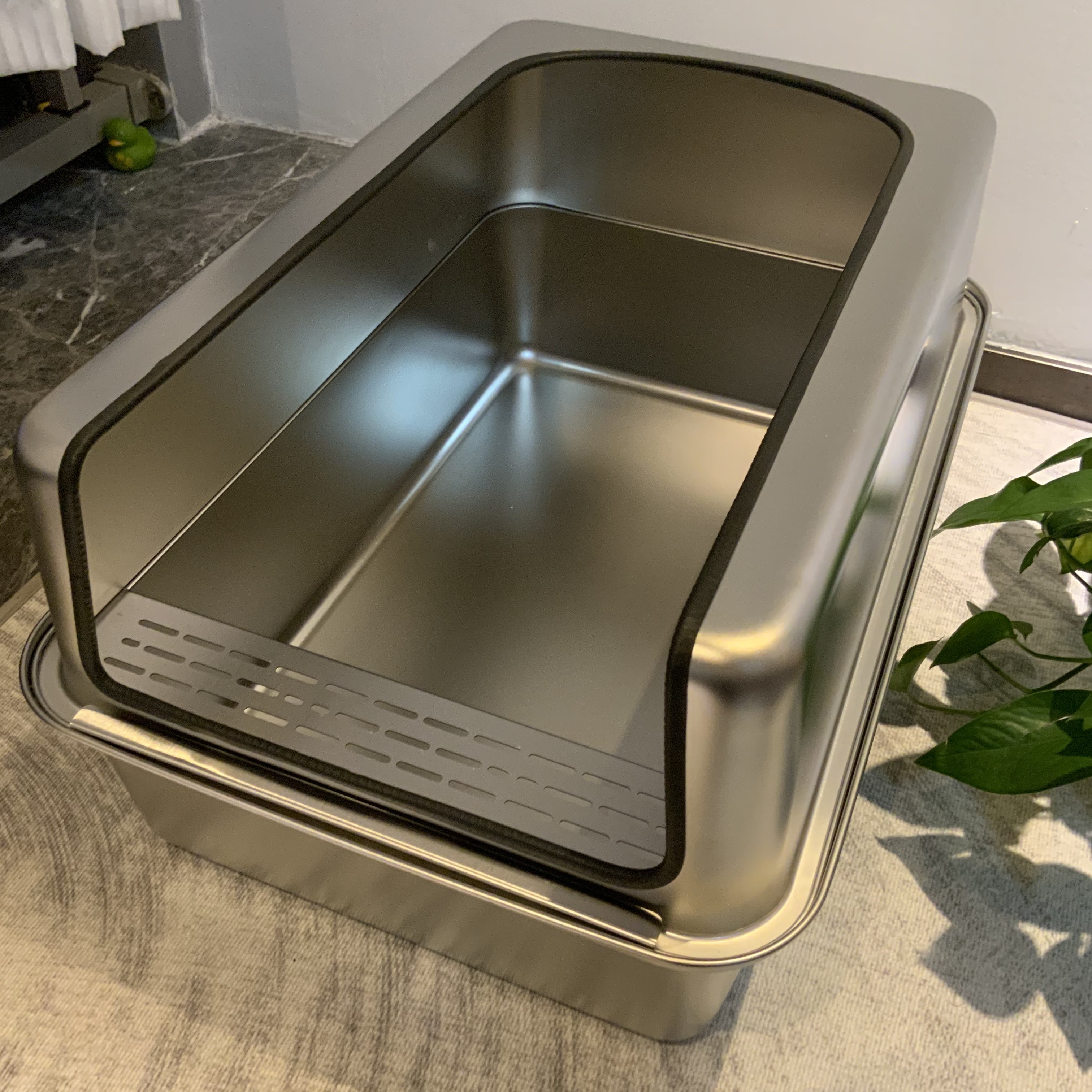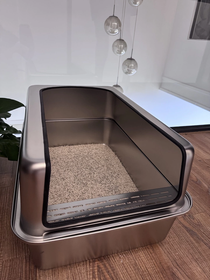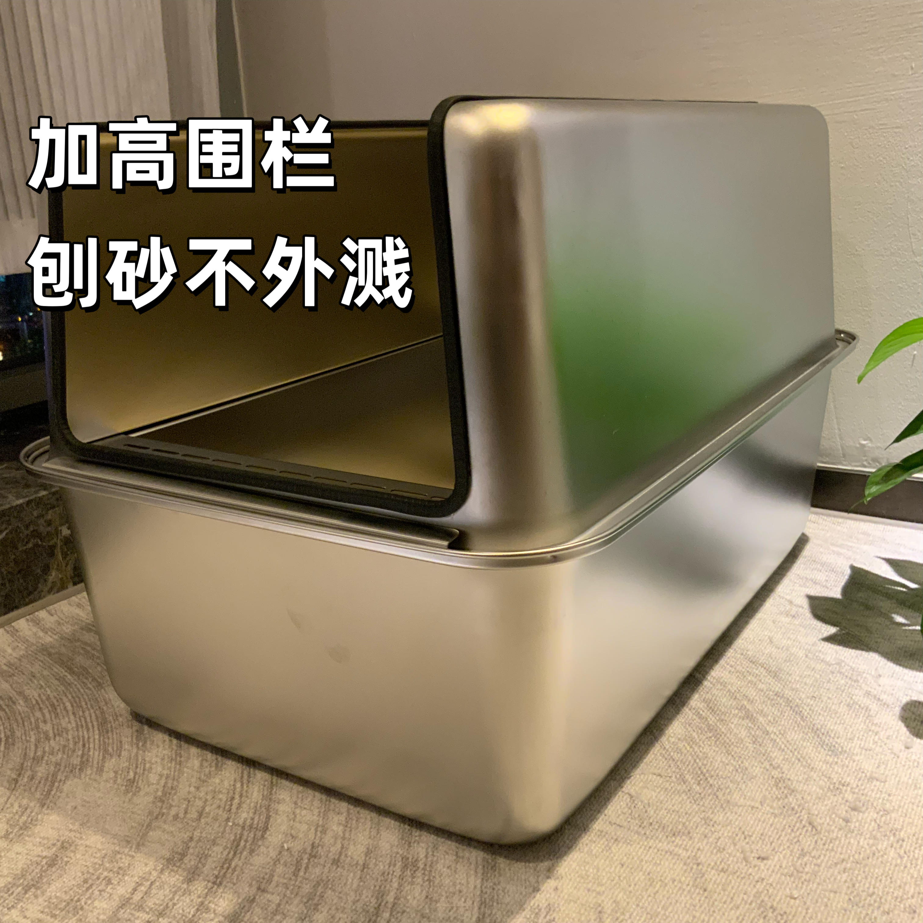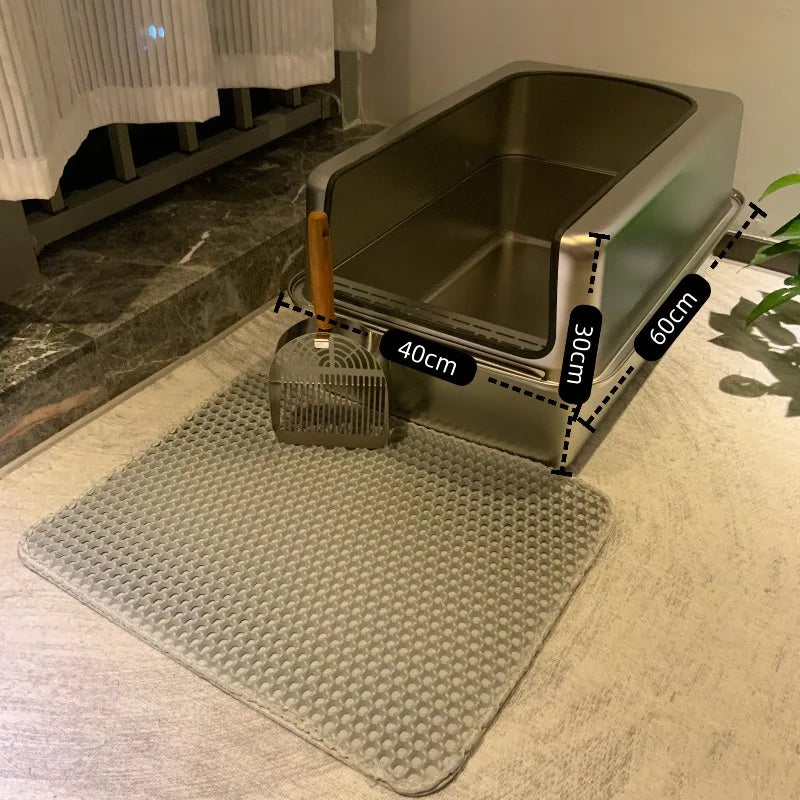 Keywords:XL stainless cat litter box, open cat toilet, spill-proof litter tray, metal cat pan, large open litter bin, elevated cat box, no-leak cat litter, anti-splash litter box, giant stainless pet tray, odorless cat toilet