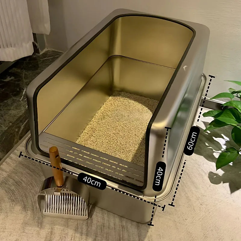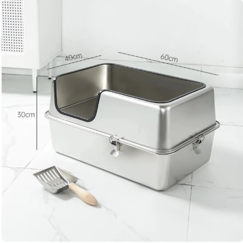 Extra-Large Stainless Steel Cat Litter Box – 60cm